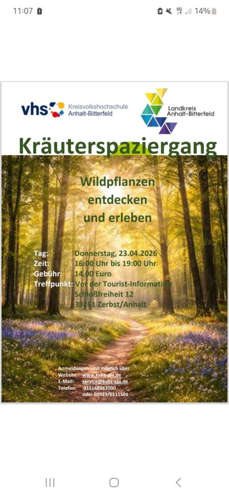 - Wo: Zerbst (Buchung über VHS Zerbst)